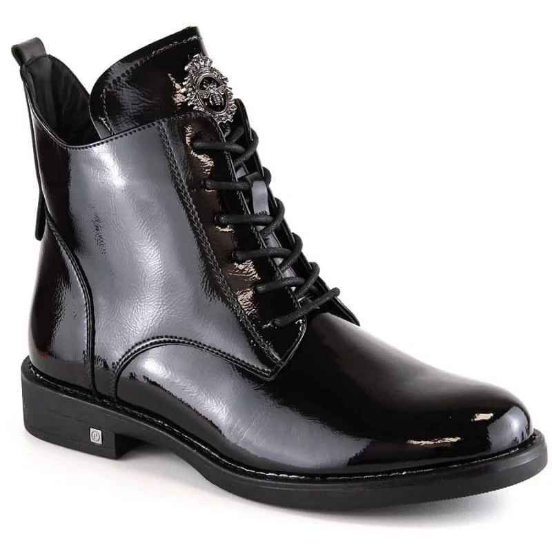 Lakované boty na zip Potocki W WOL171A černá Vlastnosti: boty od Potocki ideální na podzim a zimu p