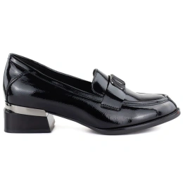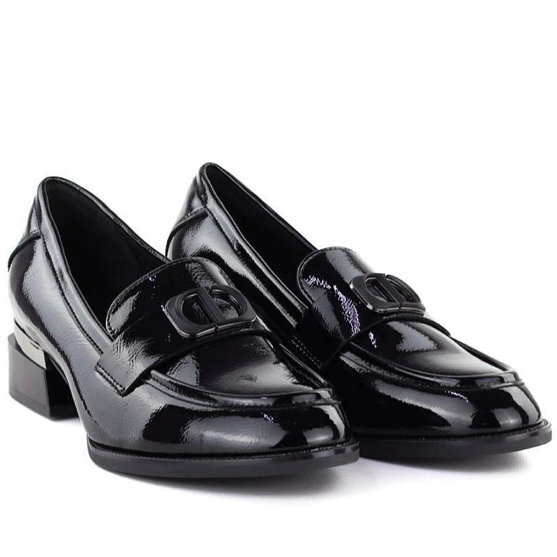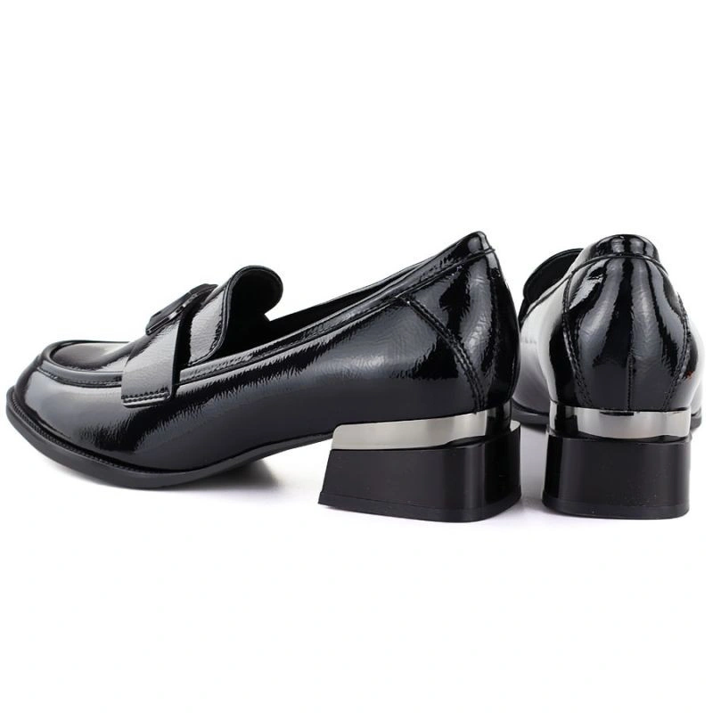Popis Dámské lakované polobotky s ozdobným podpatkem černé Vinceza 58638