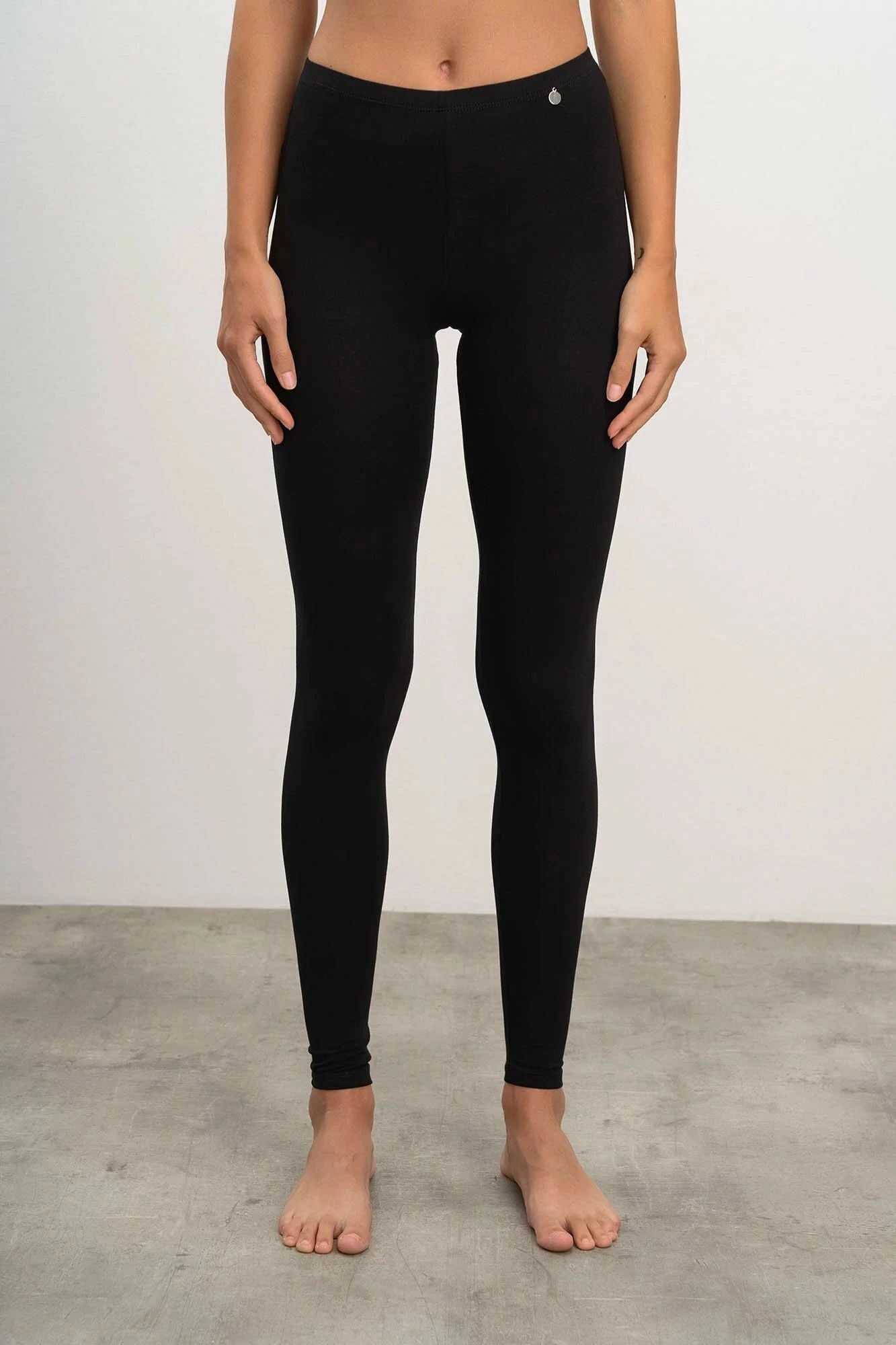 Dámské černé legíny s pohodlným pružným pasem. Vyrobené z velmi příjemné přírodní bavlny, která zaručuje vysoký komfort během nošení. Materiál 92% cotton, 8% elastane