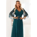 - průhledné tylové rukávy dodávají lehkost, aniž by zatěžovaly ramena, zatímco vzdušná maxi sukně jemně prodlužuje siluetu a krásně tvaruje pohyb