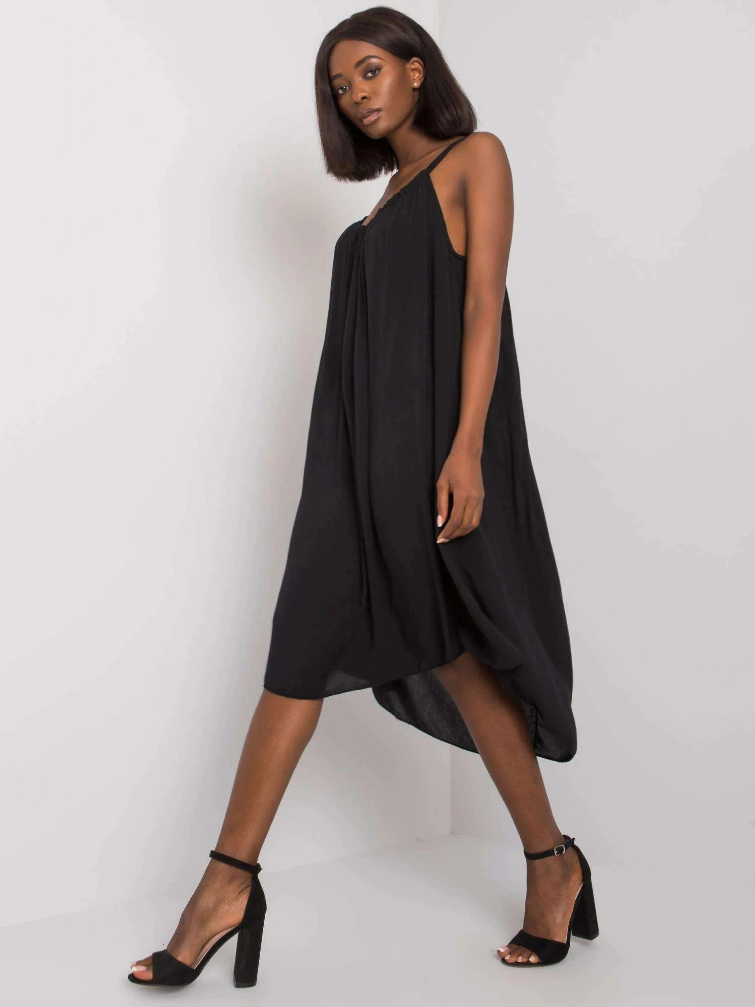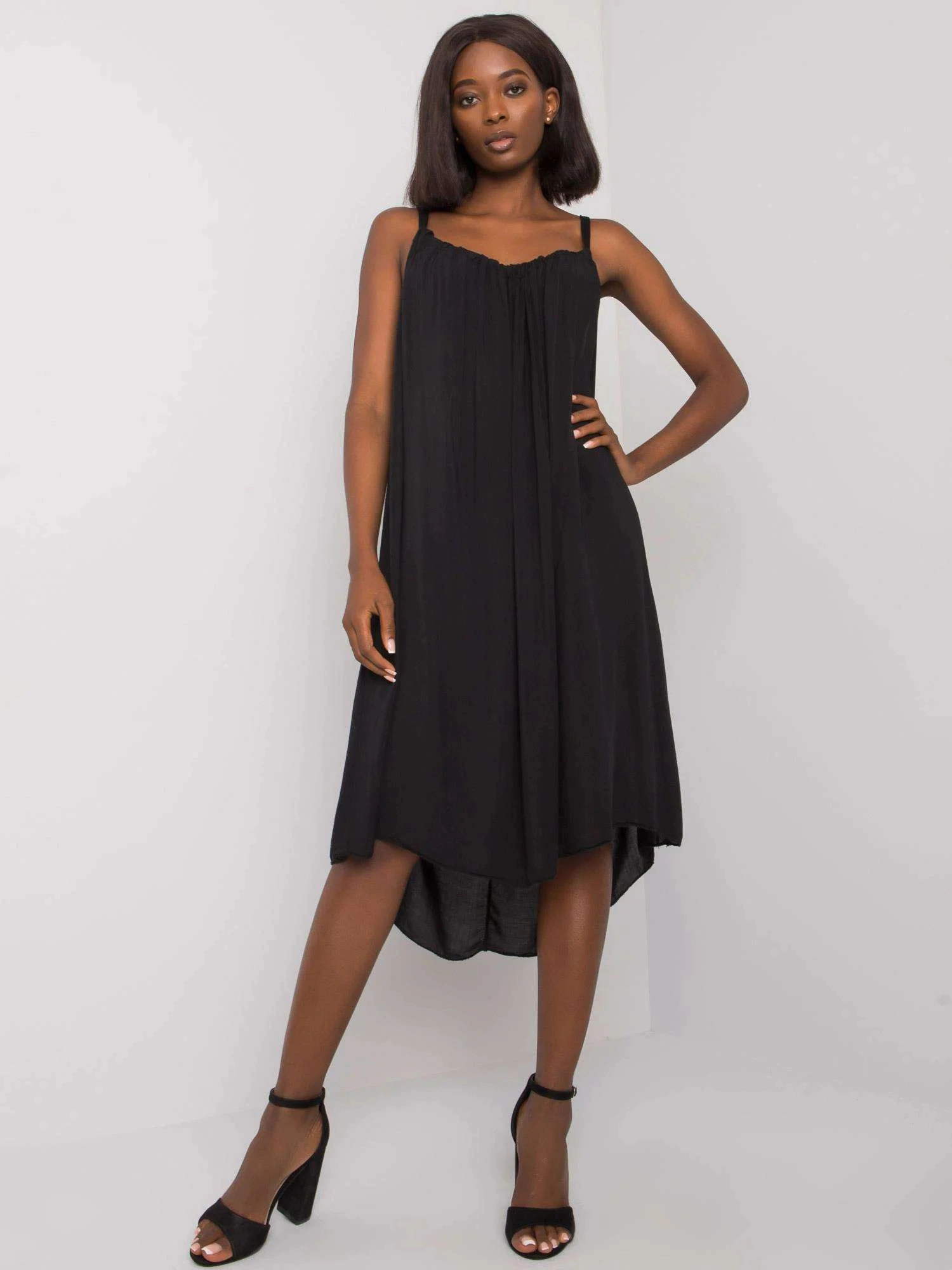 Lehké dámské šaty s asymetrickou sukní černé - Černá - LULU&LOVE