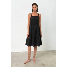 Pohodlné letní dámské šaty vyrobené z vysoce kvalitní přírodní egejské žakárové bavlny, která poskytuje vysoké pohodlí, příjemný pocit na dotek, prodyšnost, pružnost a odolnost.