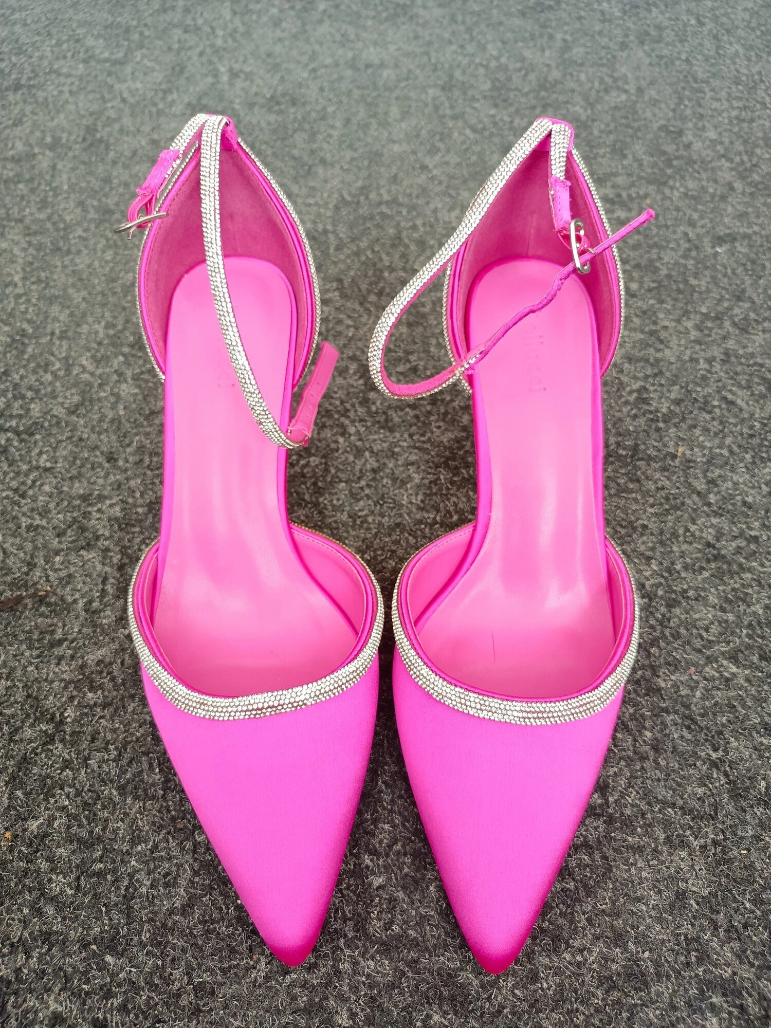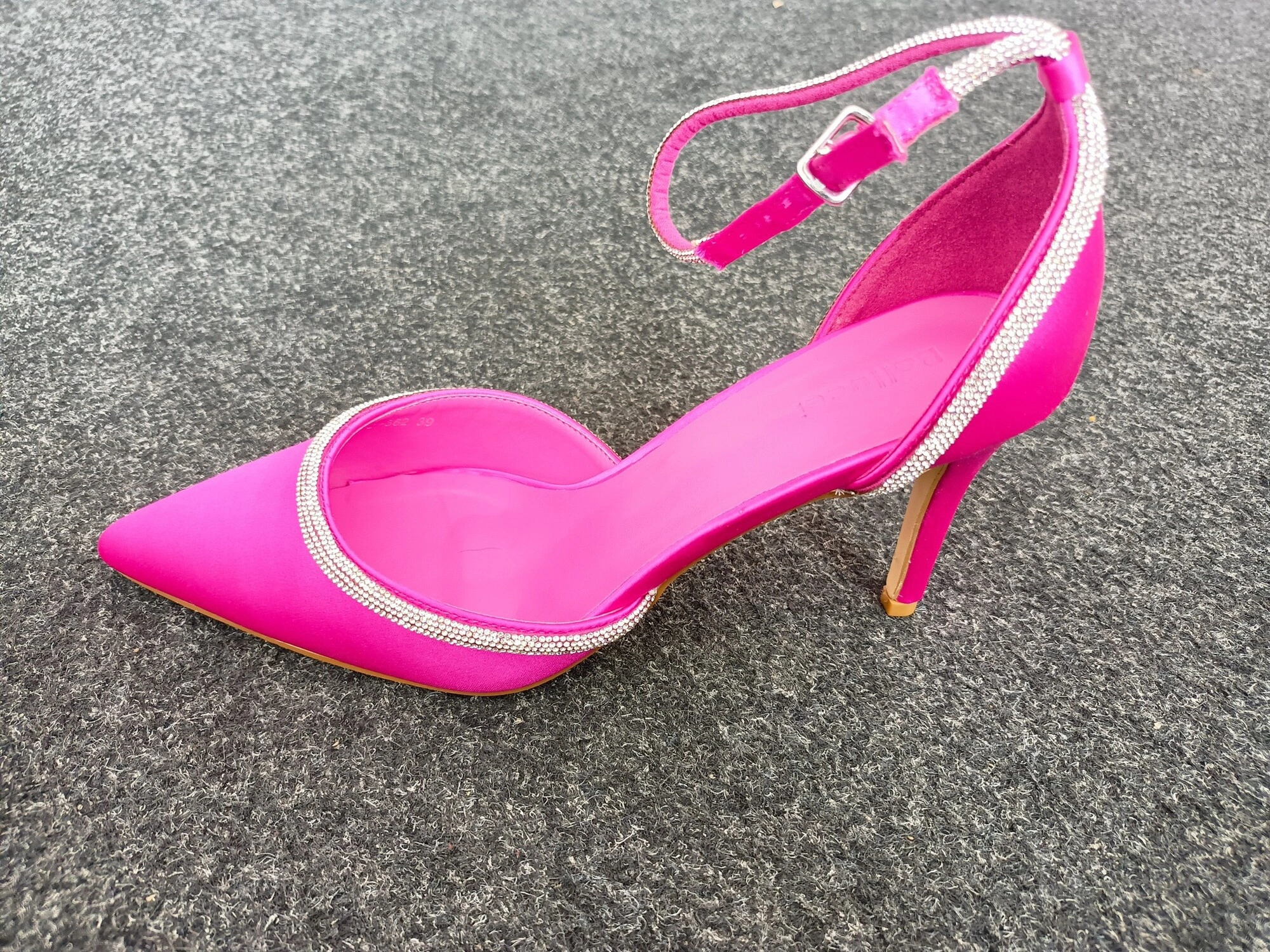 Dámské luxusní, jemně lesklé fuchsiové lodičky se špičatou špičkou,