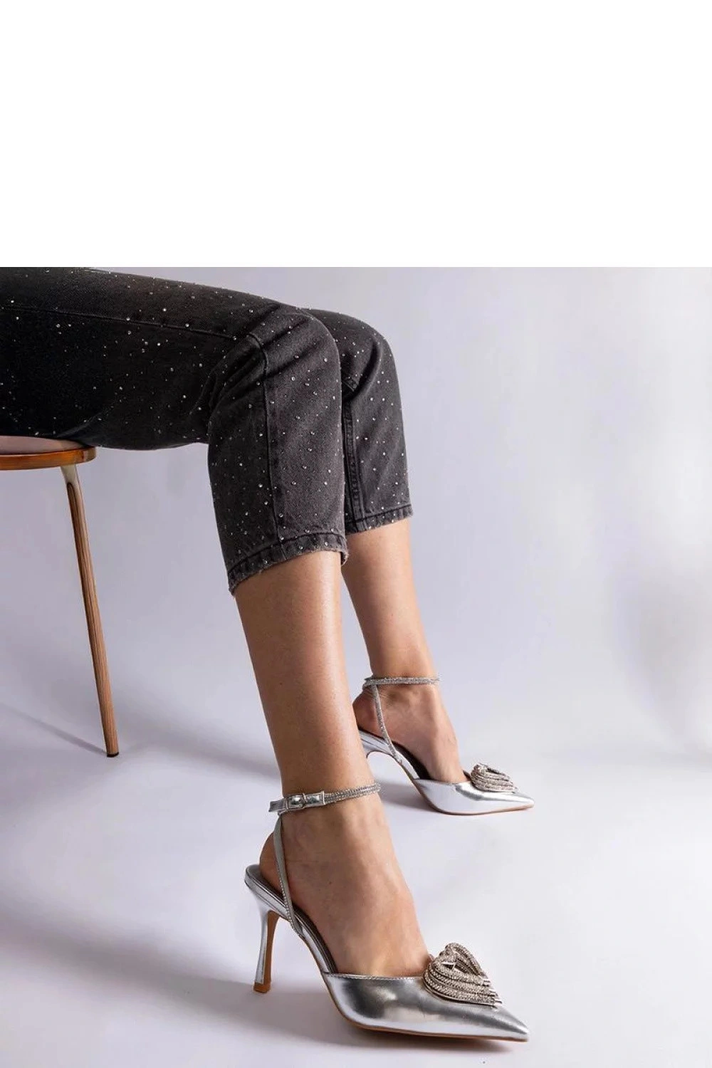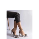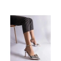 Stříbrné špendlíky s odkrytou patou zdobené zirkony Isoda Dolores jsou elegantní boty na speciální příležitosti. Vyrobena z vysoce kvalitní ekologické kůže, mají ozdobné zirkony po celé ploše. Otevřená pata jim dodává lehkost a eleganci. Ideální na večerní vycházky nebo slavnostní události. Zapínání na přezku zajišťuje ideální přizpůsobení k noze. Barva béžové podešve jim dodává jemný charakter. Tyto špendlíky určitě přidají sebevědomí a udělají z vás výjimečnou osobu na každé události. Ideální na letní kolekci.