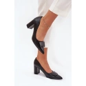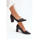 Dámské lodičky z eko kůže, umístěné na sloupkovém podpatku, kombinují eleganci s pohodlím.