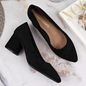 Dámské semišové lodičky na podpatku. Mají nejmódnější střih s hranatým nosem... A díky štíhlému 10,5
