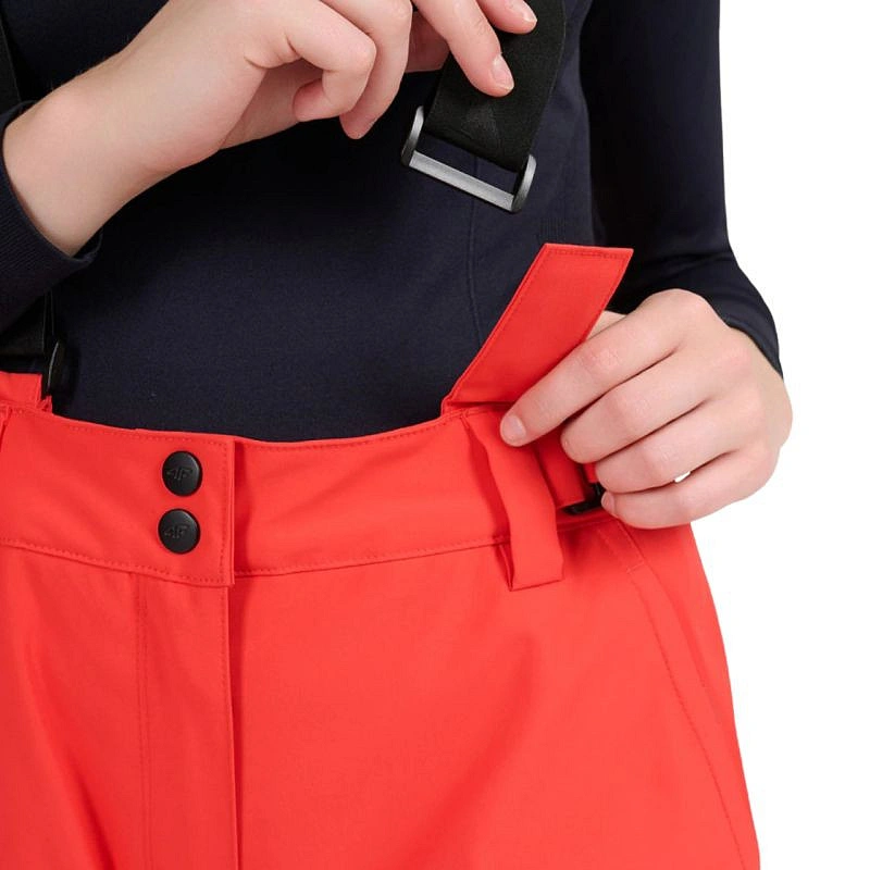 Spodnie narciarskie damskie 4F FNK F0944 czerwone 4FWAW25TFTRF0944 62S Spodnie narciarskie damskie 4F zapewnią swobodę i ochronę nie tylko na stoku. Dane techniczne:· Materiał główny: 100% poliester· Materiał dodatkowy: 100% poliester· Podszewka: 100% poliester· Wypełnienie: 100% poliester (ocieplina poliestrowa)· Poziom wodoodporności membrany: 5 000 mm· Poziom oddychalności membrany: 3 000 g· Membrana NeoDry 5000/3000 - chroni przed lekkim deszczem i wspiera oddychalność materiału· Wszystkie klejone szwy - dodatkowa ochrona przed wnikaniem wilgoci do wnętrza· Hydrofobowe wykończenie - ogranicza wchłanianie wody przez zewnętrzną warstwę materiału· Ocieplina poliestrowa - zapewnia ciepło bez dodatkowego obciążenia· Wewnętrzne nogawki przeciwśnieżne - zabezpieczają przed przedostawaniem się śniegu do środka· Odpinane, regulowane szelki- pozwalają na indywidualne dopasowanie i wygodę noszenia· Pas z regulacją na rzepy - łatwo dostosowuje się do sylwetki i zapewnia