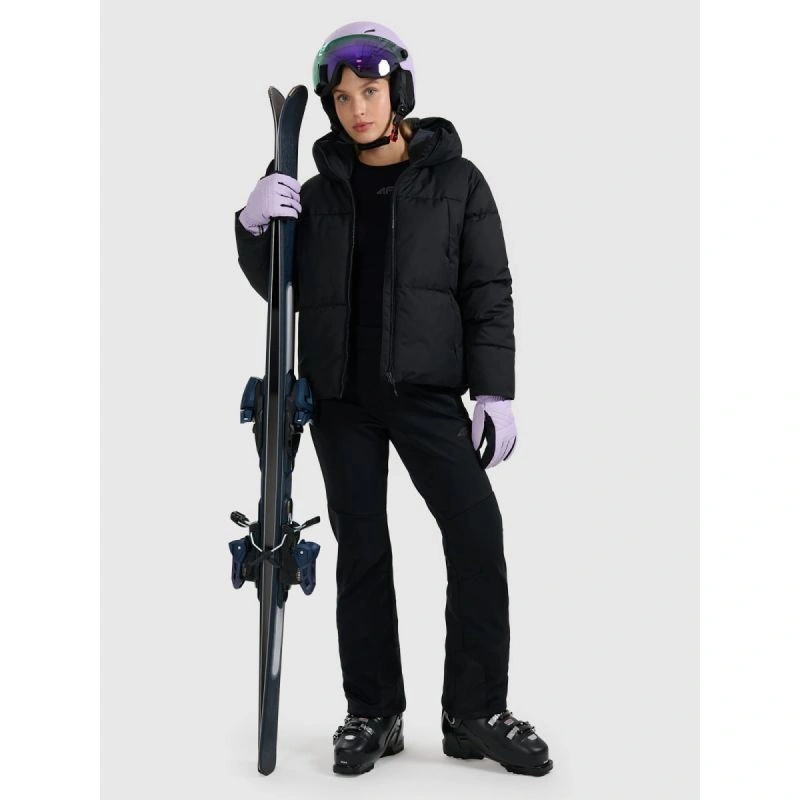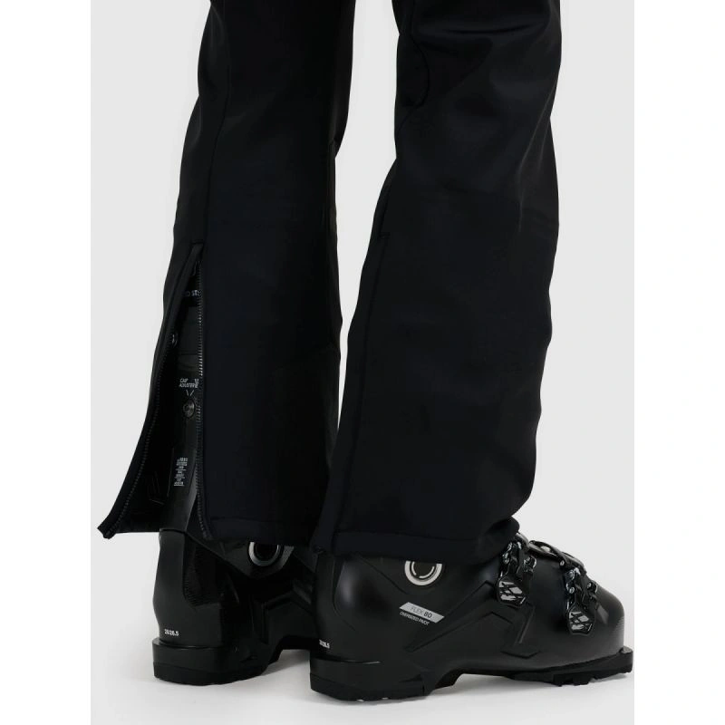 Vnitřní protisněhové nohavice brání vniknutí sněhu, zatímco výztuhy ve spodní části nohavic zvyšují odolnost při kontaktu s hranami lyží. Zipy v zadní části nohavic usnadňují oblékání kalhot přes lyžařské boty.