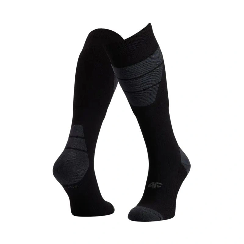 Dámské lyžařské ponožky 4F FNK F239 deep black 4FWMM00UFSOF239 20S Tyto dámské lyžařské ponožky od značky 4F jsou navrženy tak, aby chránily vaše nohy při zimním pobytu na svahu. Vyrobeny ze strečové příze. Zesílené zóny na patě a špičce. Elastický horní lem. Elastické manžety kolem klenby a kotníku. Větrací panely. Materiál: 55% akryl, 30% bavlna, 12% polyamid, 3% elastan.