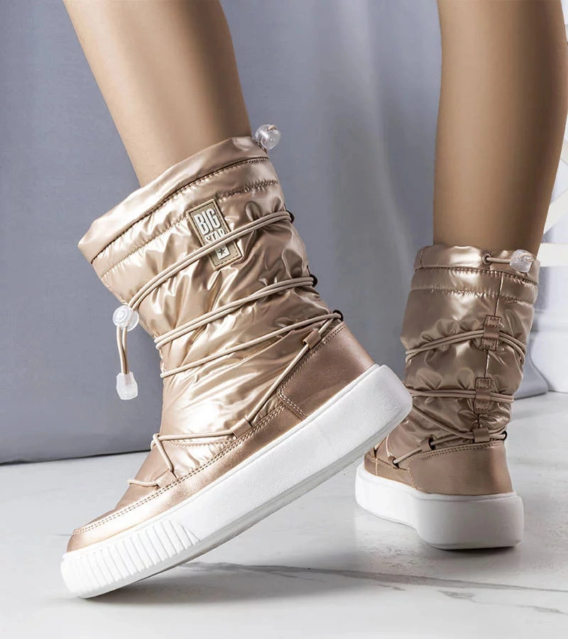 Dámské metalické INT1783B zateplené sněhule Béžová - Big Star