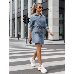 Dámské šaty s džínovou strukturou, navržené pro každodenní pohodlí a konzistentní vzhled. Střih s jasně vyznačeným pasem uspořádává proporce siluety. Díky mini délce je celý vzhled lehký a moderní. Model je doplněn páskem, který umožňuje upravit střih.