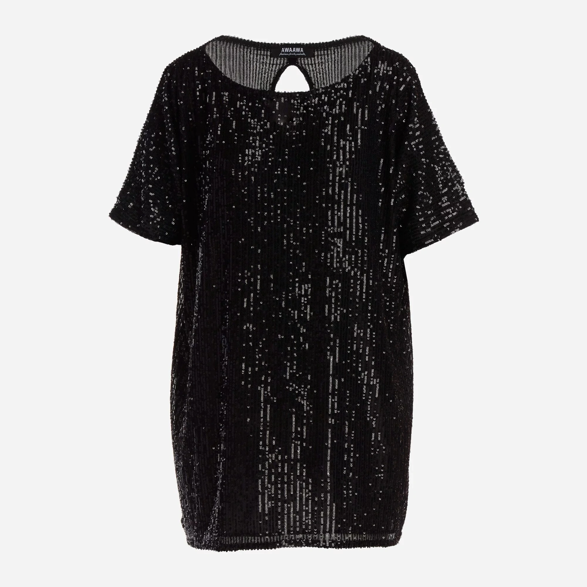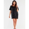 Volné třpytivé šaty s výstřihem na zádech. Součástí je elastická podšívka.