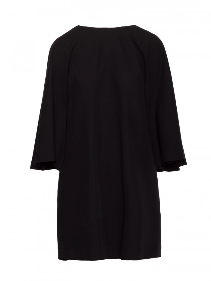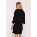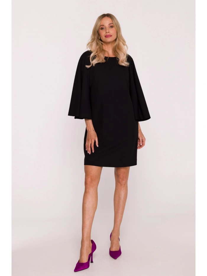 LÁTKA: hladká tkanina PODROBNOSTI O PRODUKTU Výstřih: kulatý Rukávy: široké, rozšířené netopýří rukávy, 3/4 délka Sukně: rovná Pas: volný, bez střihu Zapínání: skrytý zip na zádech Model: S426 Navrženo a vyrobeno v Polsku Modelka je vysoká 174 cm a nosí velikost S STYL A STŘIH Styl: elegantní trapézové šaty s výraznými rukávy Tvar: volný top, rozšířené rukávy, rovná sukně Délka: mini - nad kolena