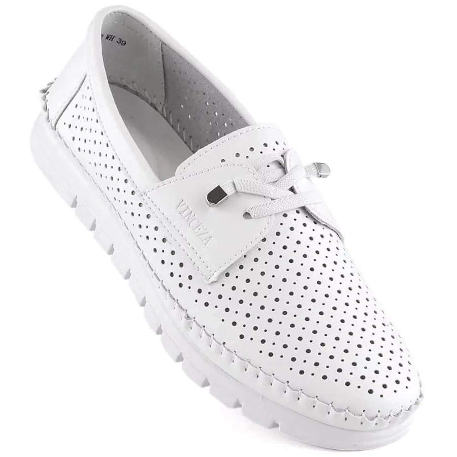 Dámské prolamované kožené slip-on boty, bílé Vinceza 7872, jsou synonymem elegance spojené s pohodlím a módním designem. Značka Vinceza, která se prezentuje jako špičkový produkt, opět dokazuje, že dokáže splnit potřeby i těch nejnáročnějších žen.