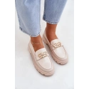 Mokasíny dámské vyrobené z ekokože. Umístěné na ploché podrážce. Tento model se vyznačuje zlatým detail, který dodává eleganci. Díky měkké vložce jsou mokasíny mimořádně pohodlné, poskytující pohodlí po celý den. Tyto mokasíny budou skvělou volbou pro ženy, které oceňují elegantní a zároveň praktický styl.