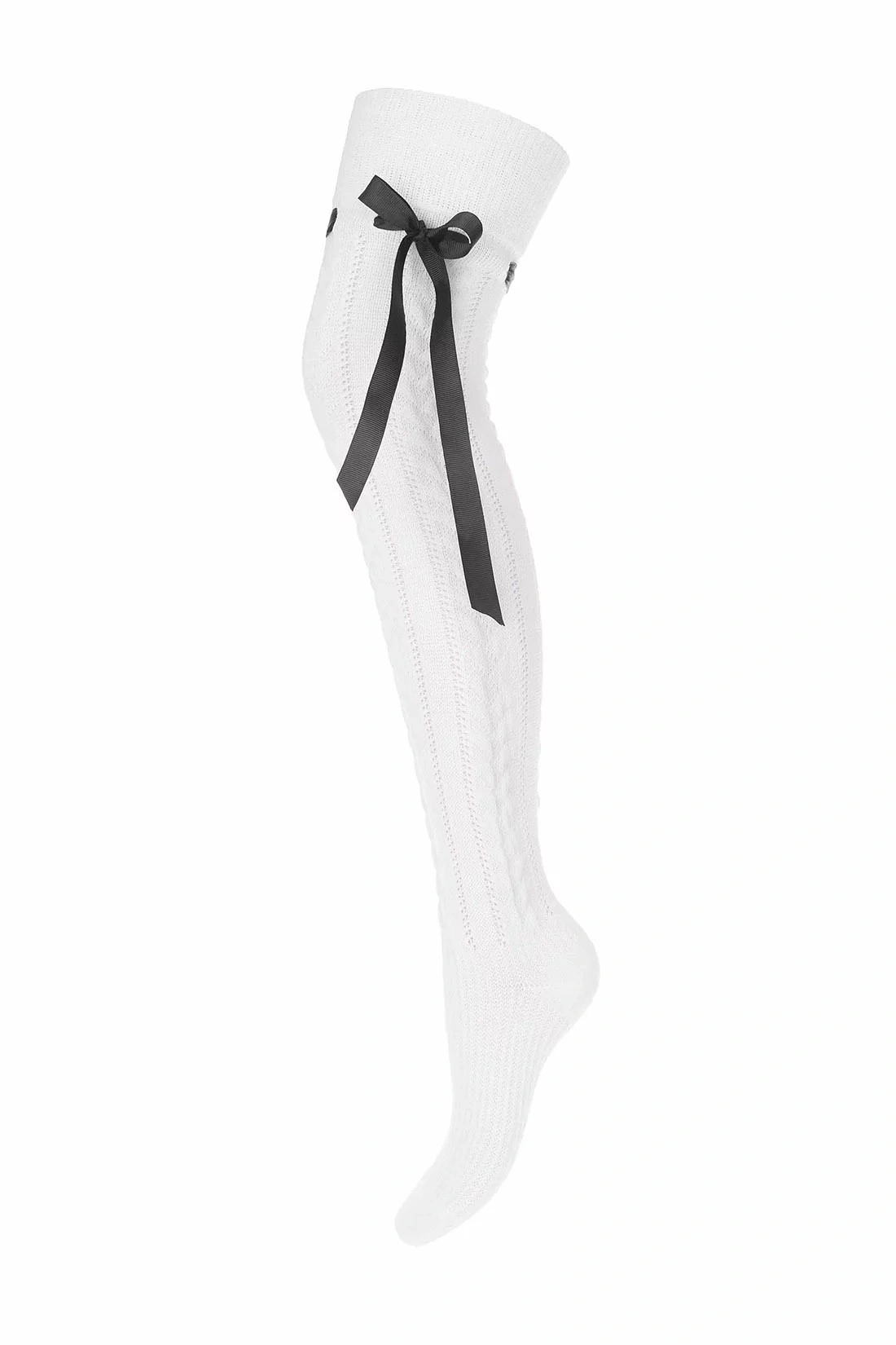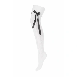 Dámské nadkolenky ze vzorované bavlny. Zdobené propletenou saténovou mašlí. Ploché švy a netlačící pásek zajišťují pohodlí při nošení.