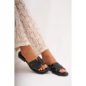 Dámské nazouváky vyrobené z ekologické kůže jsou klasickou a stylovou volbou na každý den. Plochý podpatek zajišťuje pohodlí při nošení a volnost při chůzi, díky čemuž je model ideální pro každodenní použití. Jednoduchý, nadčasový střih umožňuje snadné sladění s různými styly – jak s letními šaty, tak s casual outfity. To je ideální volba pro ženy, které ocení pohodlí a univerzální styl. Při výběru velikosti prosíme řídit se tabulkou velikostí. Při výběru velikosti se řiďte tabulkou velikostí.