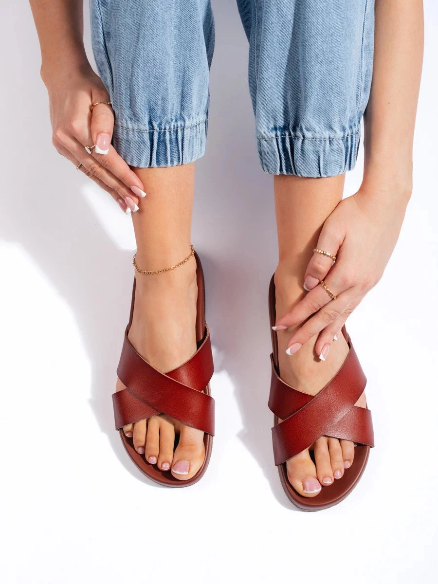 Dámské sandály z kvalitní ekokůže, ideální pro teplé dny. V přední části jsou dva proplétající se pá