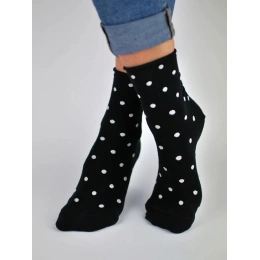 Dámské bavlněné ponožky, které jsou ozdobené lesklými puntíky.