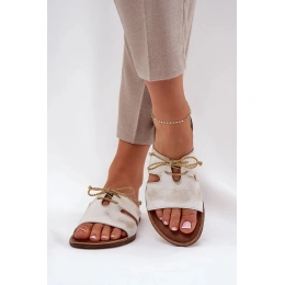 Dámské pantofle z přírodní kůže jsou skvělou volbou na slunné dny, spojující eleganci s pohodlím. Ploché podpatky zajišťují komfort a vkusná zlatá šňůra na svršku jim dodává výjimečné kouzlo. Dokonalé pro různé letní stylizace, tyto pantofle budou skvělým doplňkem vašeho vzhledu!