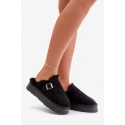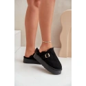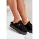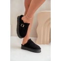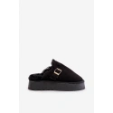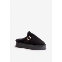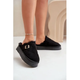 Stylové dámské pantofle na silné podrážce jsou ideální volbou na chladnější dny. Zateplené měkkým kožíškem, poskytují výjimečné pohodlí a teplo. Ozdobené páskem se zlatou sponou. Ideální na nošení doma a rychlé vyběhnutí ven. Při výběru velikosti se řiďte tabulkou velikostí.