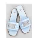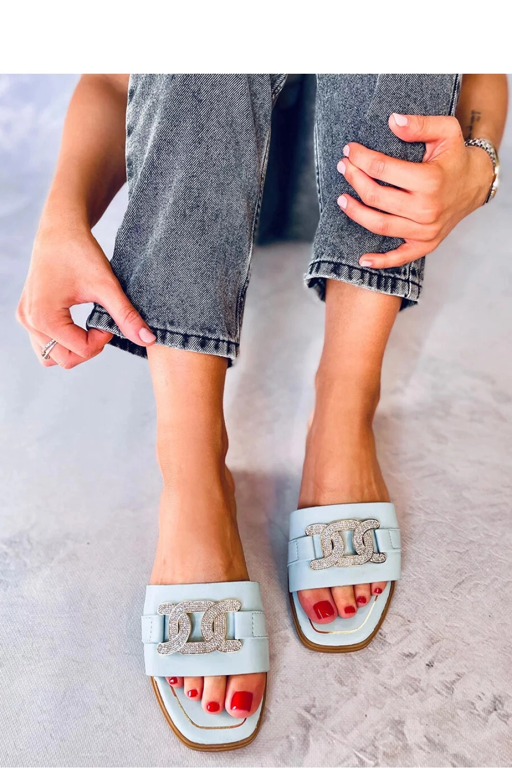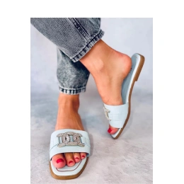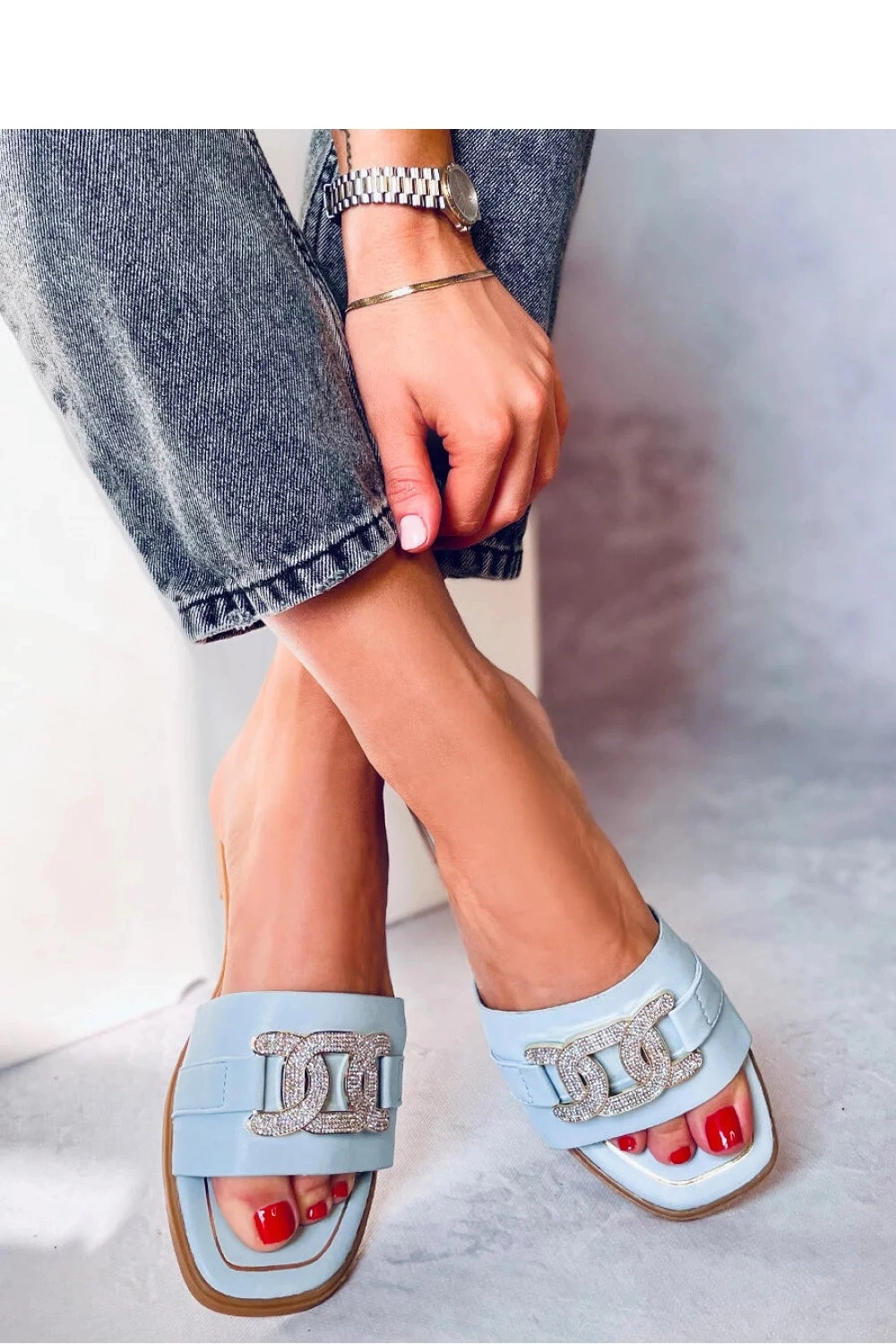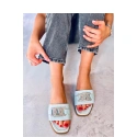 Stylové dámské žabky na ploché podrážce. Tento jedinečný model má nejmódnější čtvercový střih s třpytivou aplikací ze zirkonů..... Pokud se chcete v létě cítit žensky a stylově, tyto žabky jsou pro vás jako stvořené. Vnější materiál - ekologická kůže.