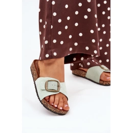 Dámské sandály vyrobené z ekologického semiše. Umístěné na korkové platformě. Vynikají sponou s nastavitelným řemínkem, který umožňuje dokonalé přizpůsobení noze. Profilovaná stélka poskytuje pohodlí po celý den a jejich jednoduchý vzhled je ideální pro každodenní outfit. Ideální na letní dny, hodí se k šatům, sukním nebo kalhotám, přinášejí lehkost a styl do každé kreace.