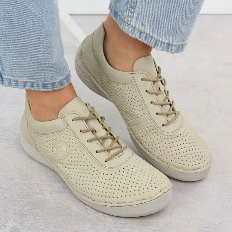 Popis Dámské perforované béžové kožené polobotky Rieker 52546-60