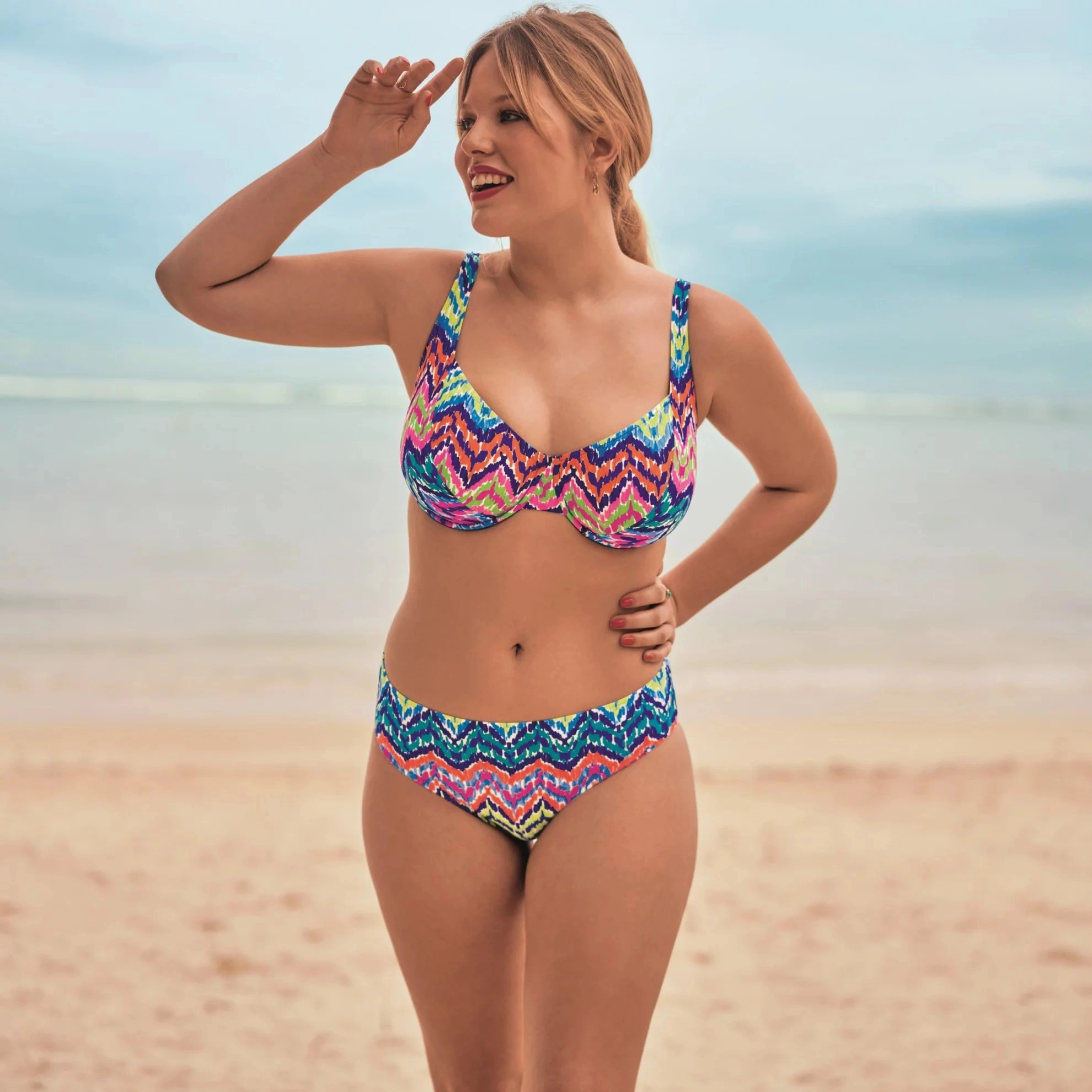 Kalhotky ''Summer Sun'' casual plus zaujmou svým čistým, mírně zvýšeným střihem, který obzvlášť lichotivě zvýrazňuje postavu.