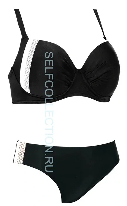 Dámské dvoudílné plavky, vrchní díl vyztužený, s odepínacími ramínky na posouvání. Spodní díl kalhot