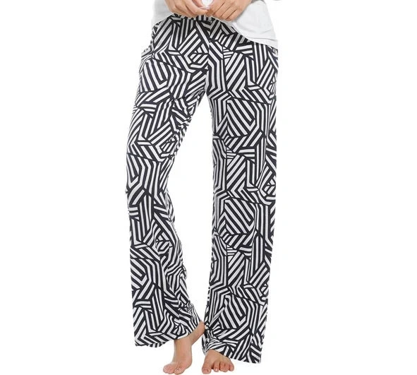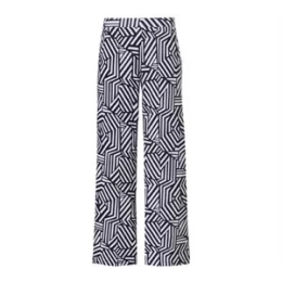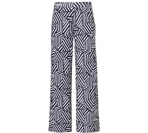 Plážové kalhoty Pastunette s kapsami – elegantní tmavě modré společenské kalhoty, noční kalhoty nebo plážové kalhoty s bílým grafickým potiskem. Možná znáte měkké vlastnosti kvality Bamboo? S viskózou získáte úplně stejné vlastnosti. Fantastický komfort a měkkost, která je příjemná na těle, s fantastickými vlastnostmi pro regulaci teploty a odvodu potu. Měkký žerzej vyrobený z rostlinných a dřevěných vláken