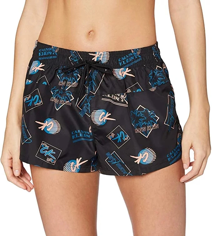 Dámské plážové šortky KW0KW01060-0GM černá - Calvin Klein černá s potiskem M