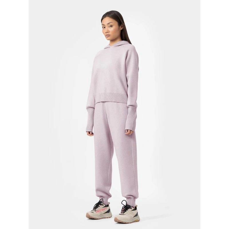 Dámské úpletové kalhoty typu jogger. Rovný střih s elastickým pasem a žebrovanými nohavicemi vám zajistí každodenní pohodlí a příjemný úplet s viskózou.