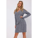 Dámské pletené šaty nad kolena, dlouhé rukávy, vepředu rafinovaně přeložené.