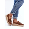Dámské nazouvací polobotky byly vyrobeny z přírodní kůže. Stojí na masivní platformě. Plastová ozdoba na přední straně. Pod jazykem se nachází pružný pásek, který umožní přizpůsobení obuvi velikosti nohy. Svršek z přírodní kůže zajistí pohodlí po celý den! Zaoblená špička. Vyztužená pata.