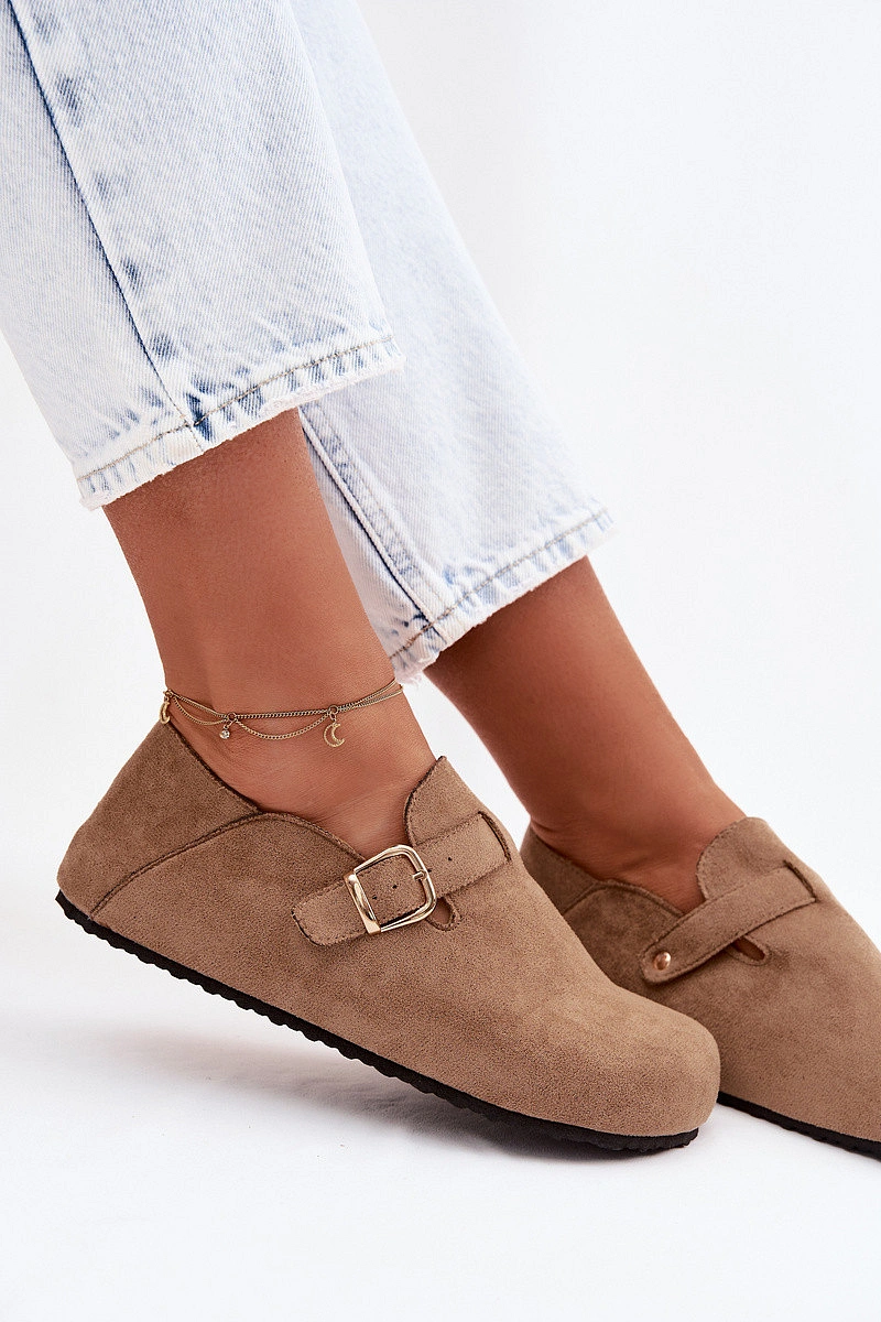 Dámské polobotky ve stylu nazouváků vyrobené z eko semiše představují spojení pohodlí a módního vzhledu. Nášlapný střih umožňuje rychlé obouvání a široké špičky zaručují volnost prstů a pohodlí po celý den. Model doplňuje ozdobný pásek se zlatou přezkou, který dodává stylový akcent a zdůrazňuje charakter obuvi. Profilovaná, měkká vložka se přizpůsobí noze, zvyšuje komfort a činí tyto polobotky ideální pro každodenní outfity. Při výběru velikosti se řiďte tabulkou velikostí.