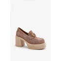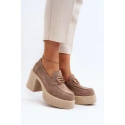 Dámská obuv na vysokém podpatku se svrškem z ekokůže. Osazeny na silné podrážce a podpatku v podobě masivního sloupku. Tento model má zakulacený nos. Kožená stélka zajistí pohodlí při používání. Pásek a ozdoba na přední straně.