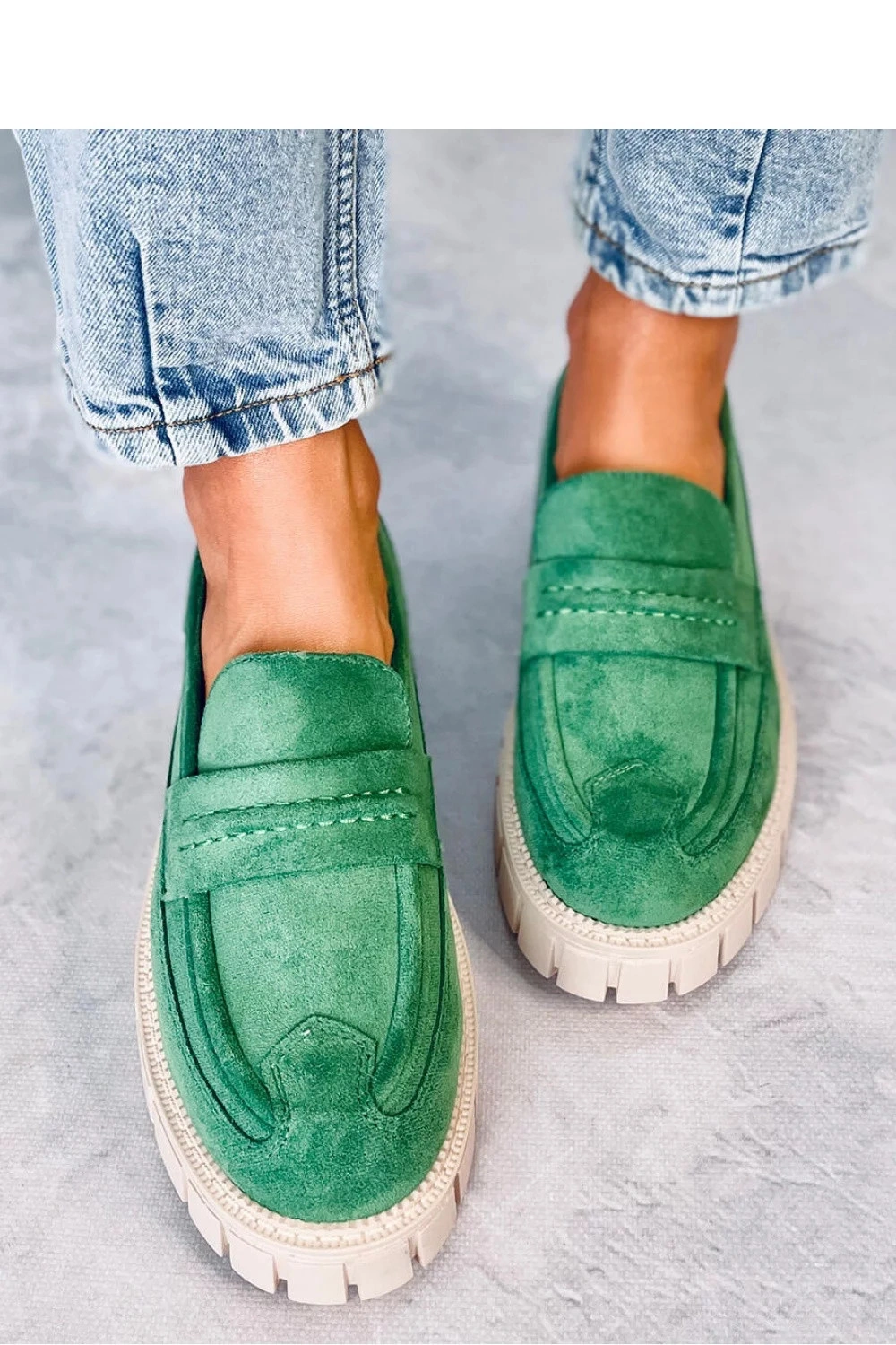 Dámské semišové mokasíny na platformě. Model se vyznačuje nejmódnějším střihem na masivní 2,5 cm vysoké podrážce. Asi víte, které boty budou kralovat vašemu šatníku? : ) Jsou vyrobeny z ekologického semiše, který podtrhuje jejich jedinečný styl.....