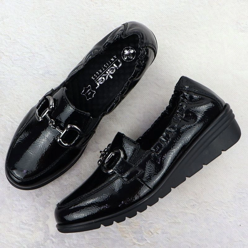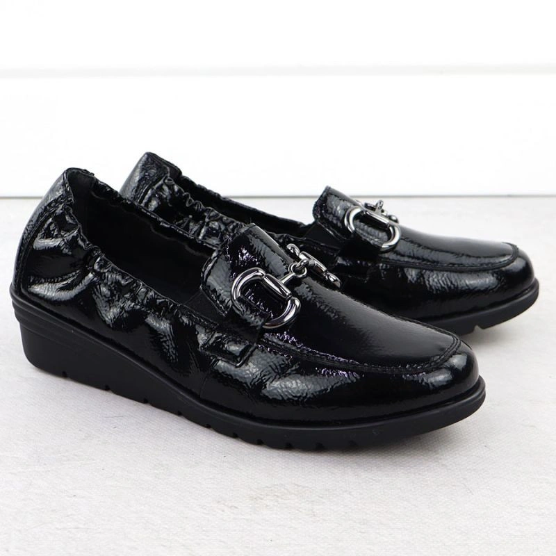 Popis Dámské polobotky z lakované kůže na platformovém podpatku černé Rieker L5352-00