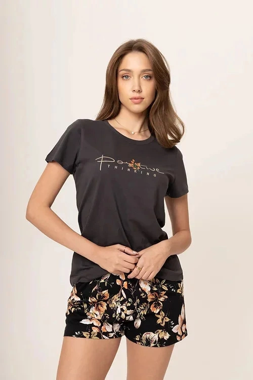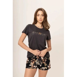 Dámské pyžamo Karol - top s kulatým výstřihem - na přední straně potisk - krátký rukáv - krátké kalhVíce
