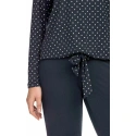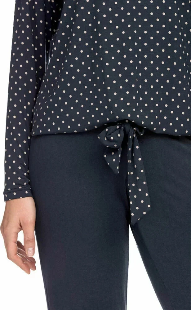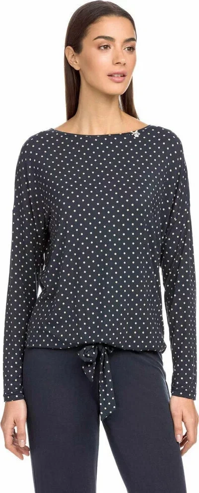 Top má dlouhý rukáv, je rozšířen v oblasti ramen, připomíná netopýří střih rukávů. Ve spodním lemu je mašle.