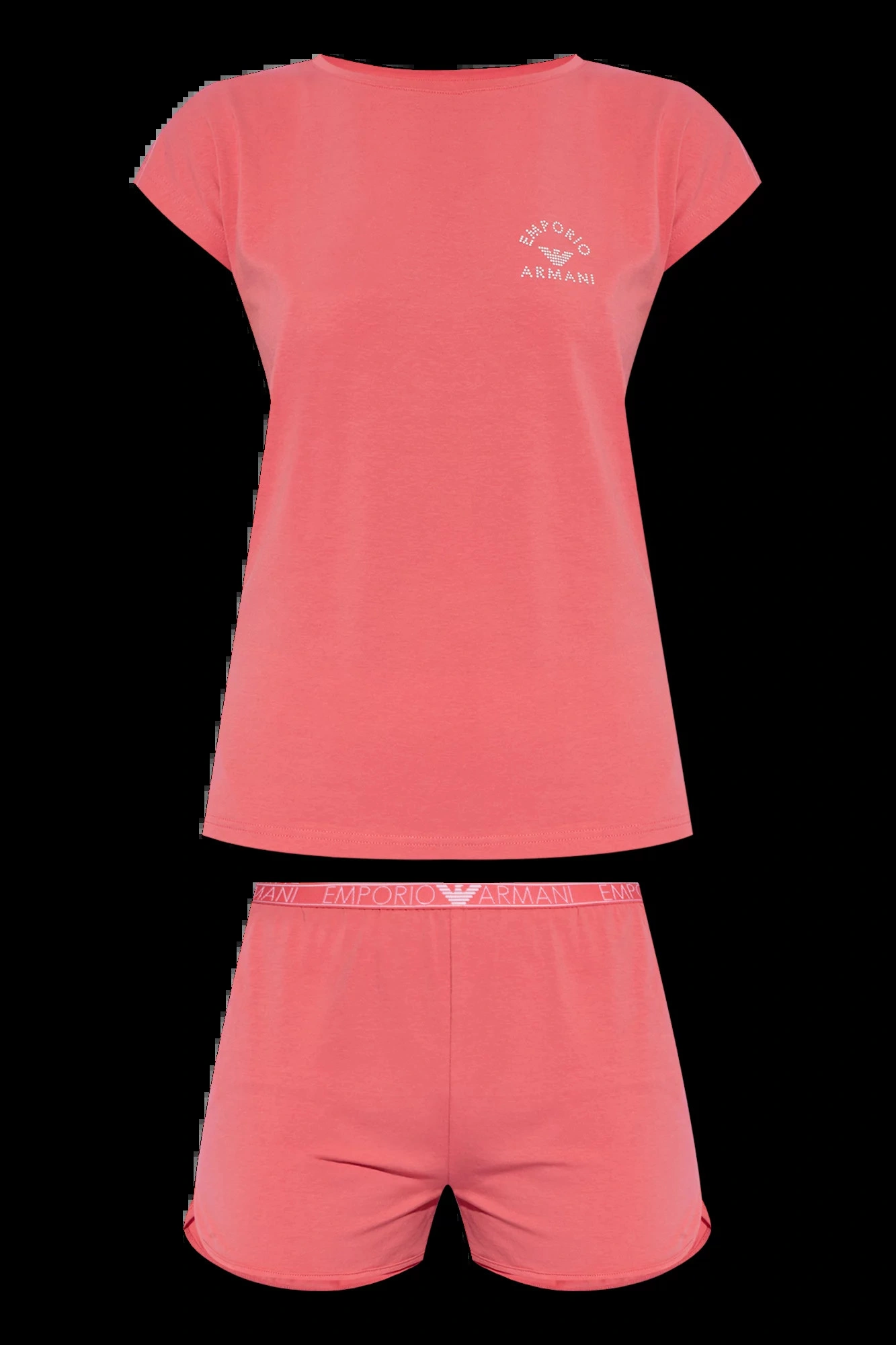 S potěšením vám představujeme dvoudílný pyžamový komplet z kolekce "Sustainability" značky Emporio Armani, který je ztělesněním elegance a pohodlí. Tato nádherná souprava, která se skládá z trička s krátkým rukávem a šortek, je určena pro ženy, které si cení vysoké kvality a jemné estetiky.