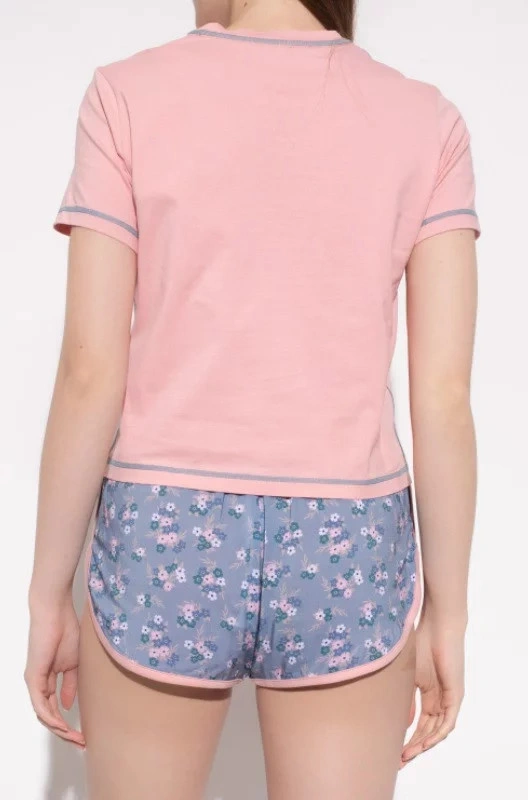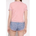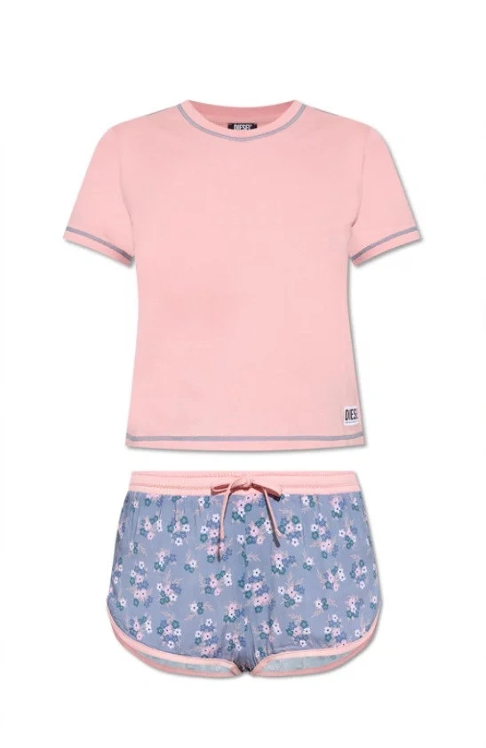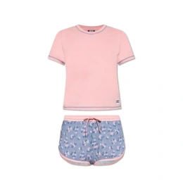Tato souprava je vyrobena z bavlny a obsahuje top s žebrovaným výstřihem a krátkými rukávy. Také šortky s elastickým pasem, šňůrkami a květinovým motivemMateriál: 100% bavlna