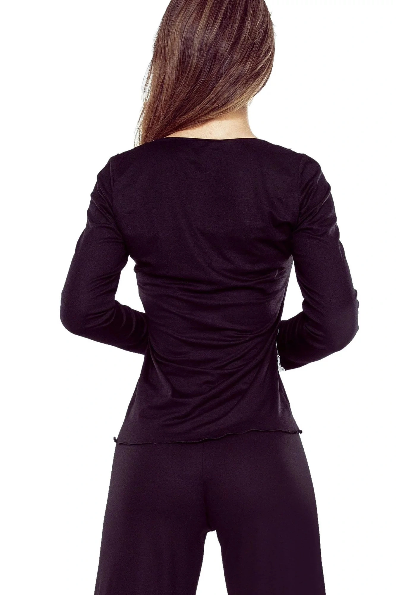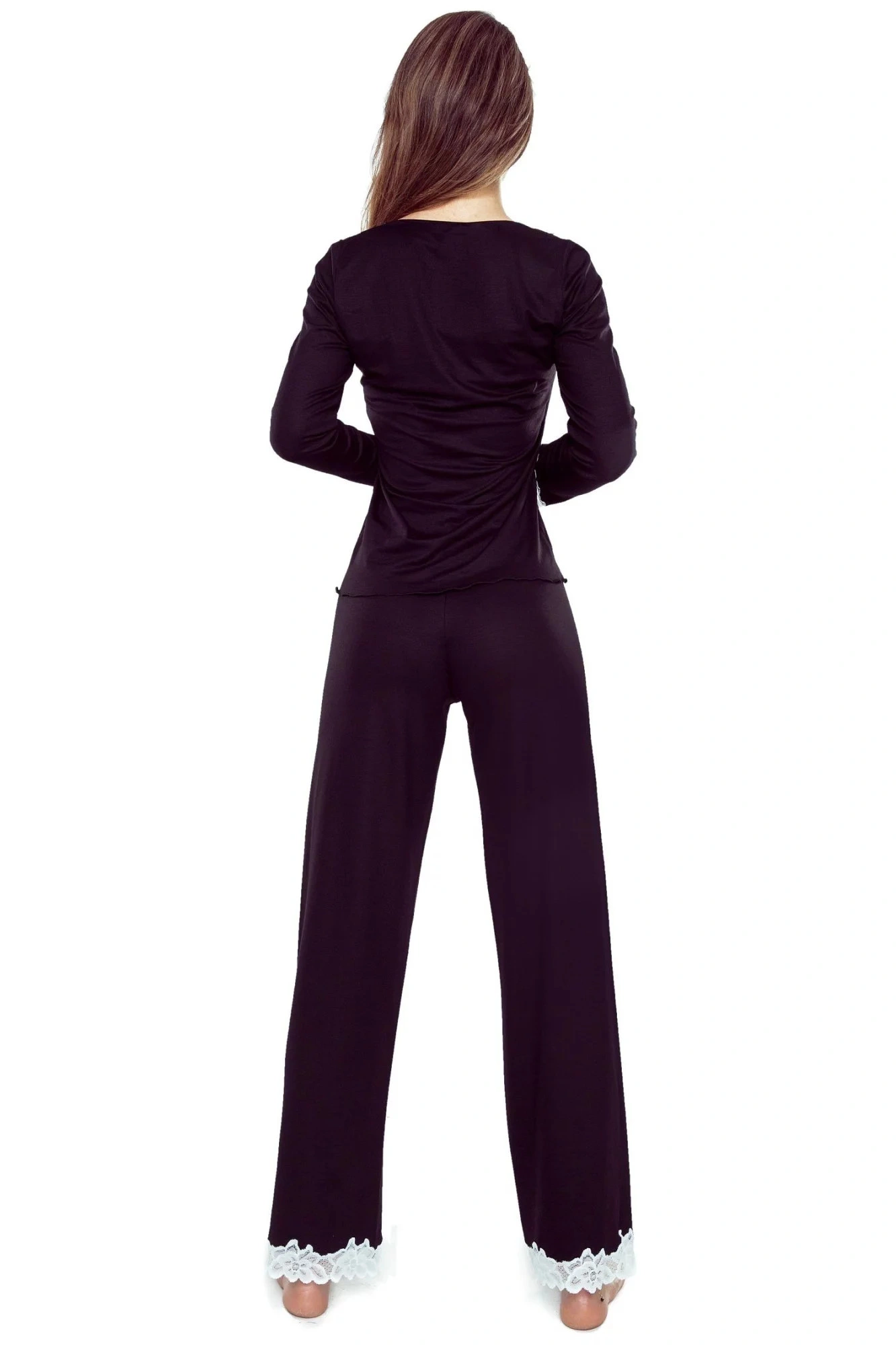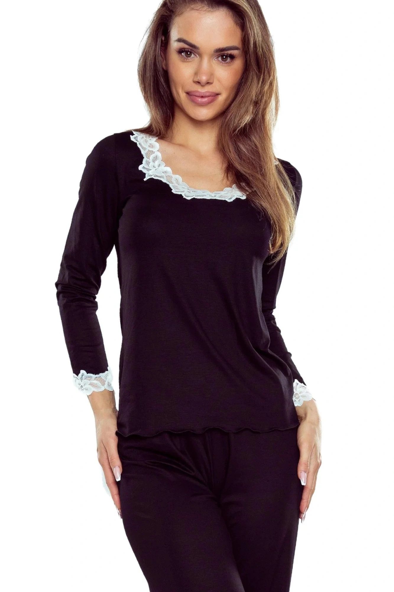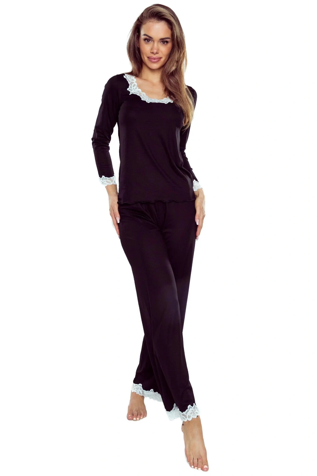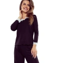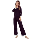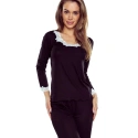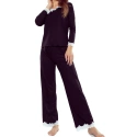 Dámské pyžamo Arleta black ELDAR - černá barva - z vysoce jakostní viskózy - dlouhé rukávy - volné dlouhé kalhoty - výstřih, rukávy i nohavice zakončené krémovou krajkou