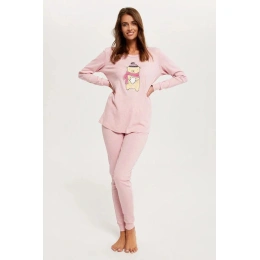 Pyžamo Baula je vyrobené z velice příjemné 100% bavlny, má melírovanou tmavší růžovou barvu a krásný potisk s vánočním medvědem. Složení: 100% bavlna