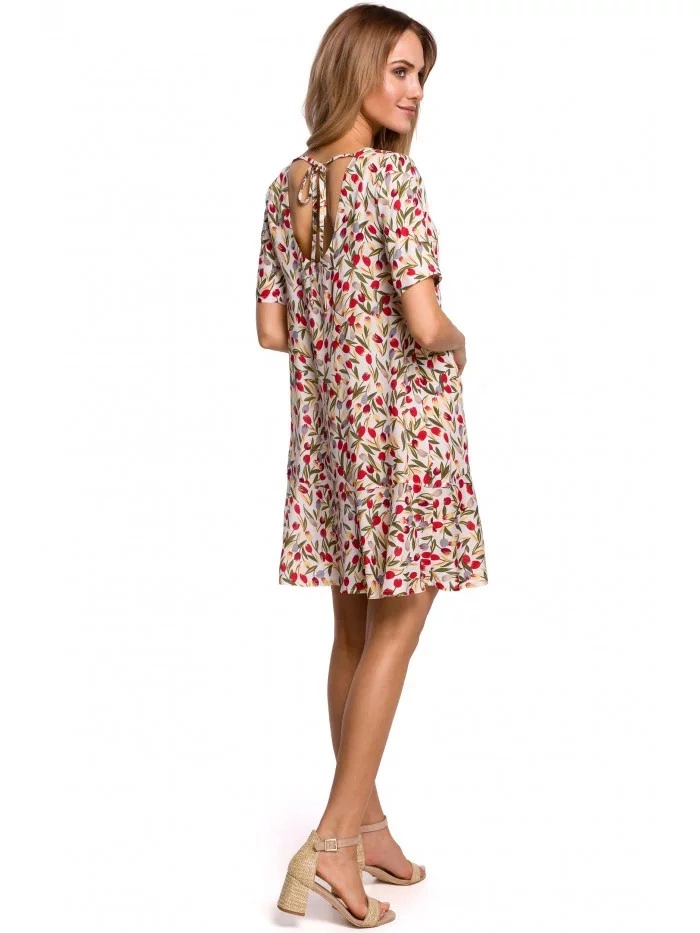 Perfektní letní šaty, lehká tkanina s květinovým potiskem, volný střih s otevřenými zády a krásným detailem zavazování.