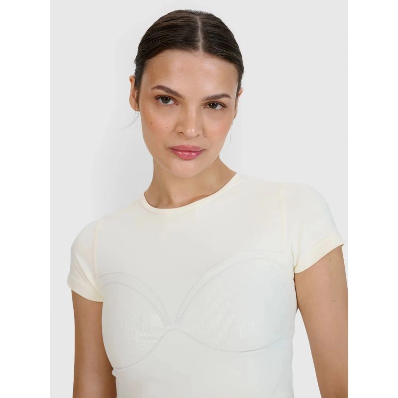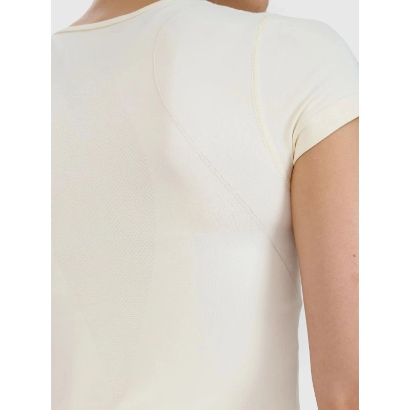 toto dámské tričko na jógu je navrženo tak, aby podporovalo plné soustředění a plynulost pohybu během cvičení. Elastická , rychleschnoucí tkanina obepne vaše tělo a zajistí pohodlí při každé pozici - od rozcvičení až po zklidnění. Střih slim fit jemně zvýrazní vaše tvary, zatímco interlocková pletenina s hladkou strukturou na obou stranách zajišťuje měkkost a odolnost. Technologie 4FDry podporuje odvod vlhkosti, zatímco bezešvá konstrukce minimalizuje riziko odřenin. Perforované vsadky na zádech zlepšují větrání, zatímco ozdobné řasení dodává ženský nádech. Tento model je ideální na jógu, pilates a klidné aktivity.