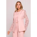 Materiál: hladká tkanina, krajkové vsadky na bocích a lemu PODROBNOSTI O PRODUKTU Výstřih: vysoký, kulatý výstřih Rukávy: bez rukávů Zapínání: skrytý zip na zádech Kapsy: žádné Model: M864 Navrženo a vyrobeno v Polsku Modelka na fotografii měří 171 cm a má na sobě velikost S STŘIH A VÝSTŘIH Střih: vypasovaný Tvar: tužková silueta s geometrickými krajkovými panely, které opticky tvarují pas Délka: nad kolena