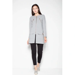 Rovně střižený kabát na zip s ozdobnými kapsami a nápadným rozparkem na zipu. Ozdobné zipy na manžetách a límci. Skvěle se hodí pro každodenní styling.
