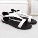 Ploché dámské sandály z ekokože, které spojují pohodlí s decentním stylem. Vepředu zdobené zlatým de